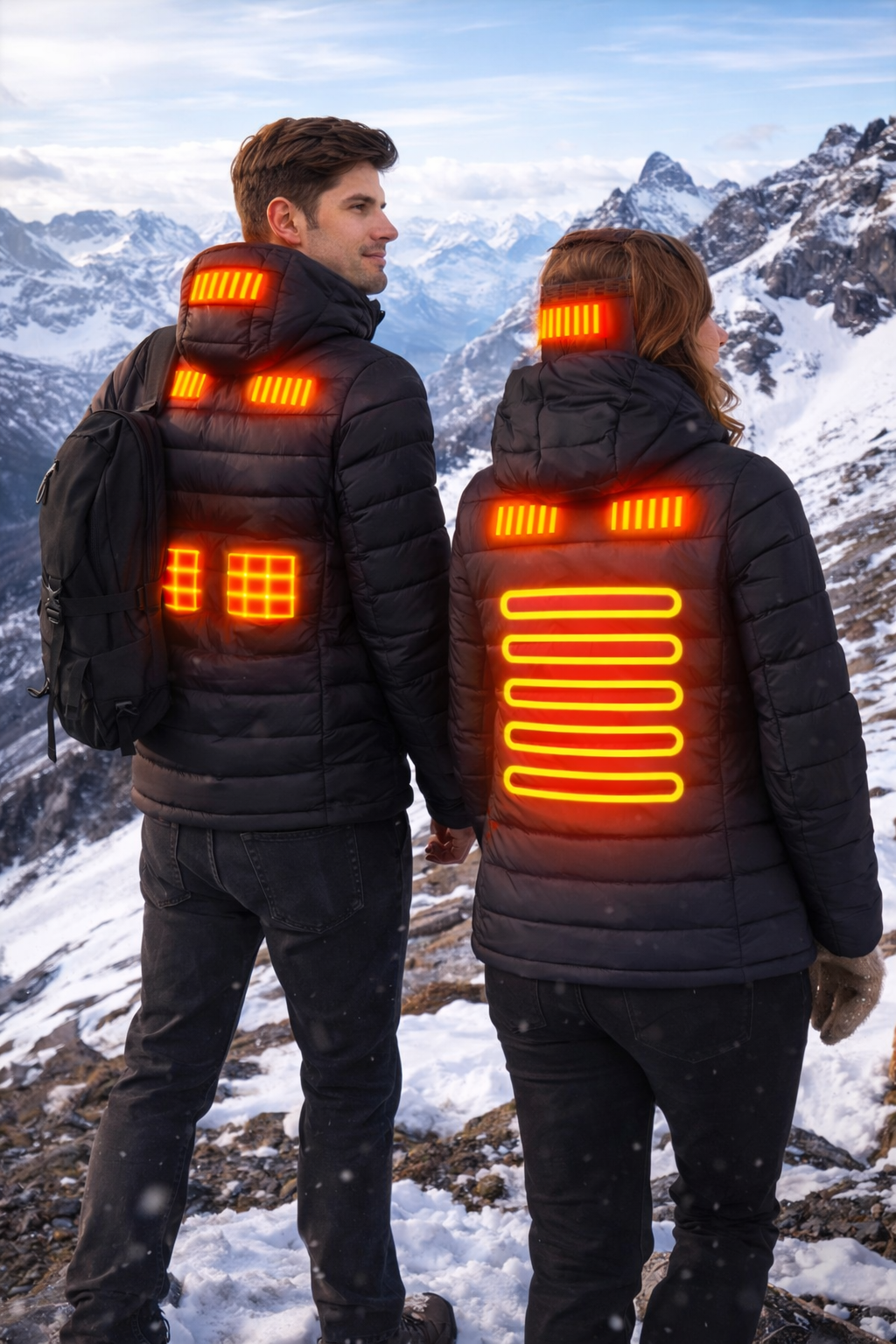 Stay warm instantly with our smart heated puffer jacket, designed to deliver fast and long-lasting warmth even in extreme cold weather. Built with advanced heating panels placed at the neck and back, it evenly distributes heat to keep your core body temperature stable and comfortable all day. The jacket is made from ultra-lightweight, windproof, and water-resistant fabric, so you stay warm without feeling heavy or bulky. Soft inner lining ensures a cozy, skin-friendly feel, perfect for daily wear, outdoor activities, travel, or working in cold environments. With a modern, minimalist design, this heated jacket looks stylish while providing powerful warmth—so you can stay confident, comfortable, and protected throughout the winter season.